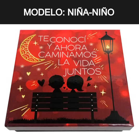 Caja Rígida 25 Chocolates, Puebla diseño: "Caminamos la Vida Juntos" (Tenemos Modelo: niña-niño / niña-niña / niño-niño