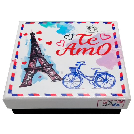 Caja Rígida 25 Chocolates, Puebla diseño: "Te Amo (Vintage)"