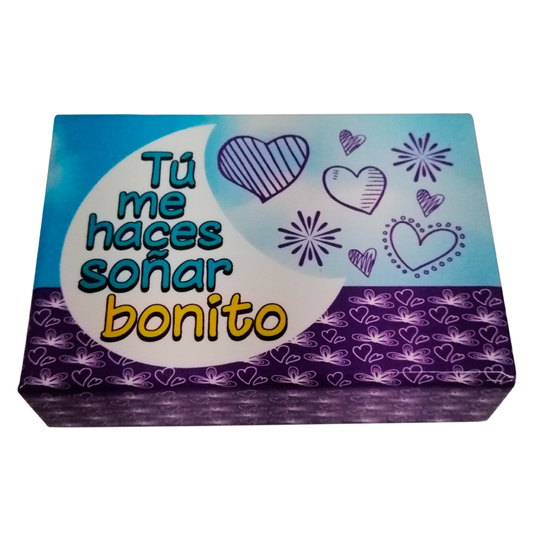 Caja Rígida 25 Chocolates, Puebla diseño: "Tú me haces soñar bonito"