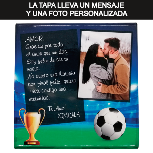 Caja Rígida con 25 chocolates,Barcelona Diseño: Futbol Estadio
